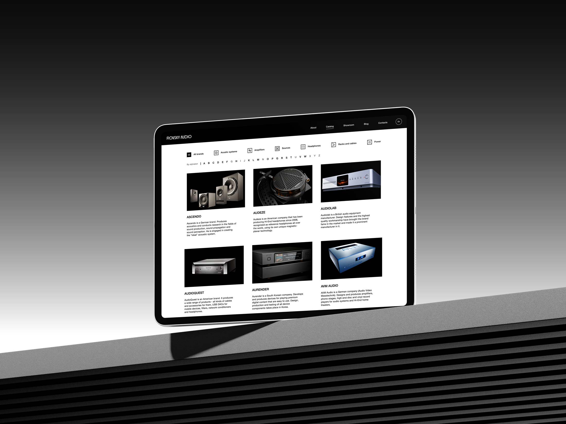 Rovsky is an international acoustic system production company who produces audio systems and reselling major luxury audio brands worldwide. We made a full brand identity and image website for its brand.
